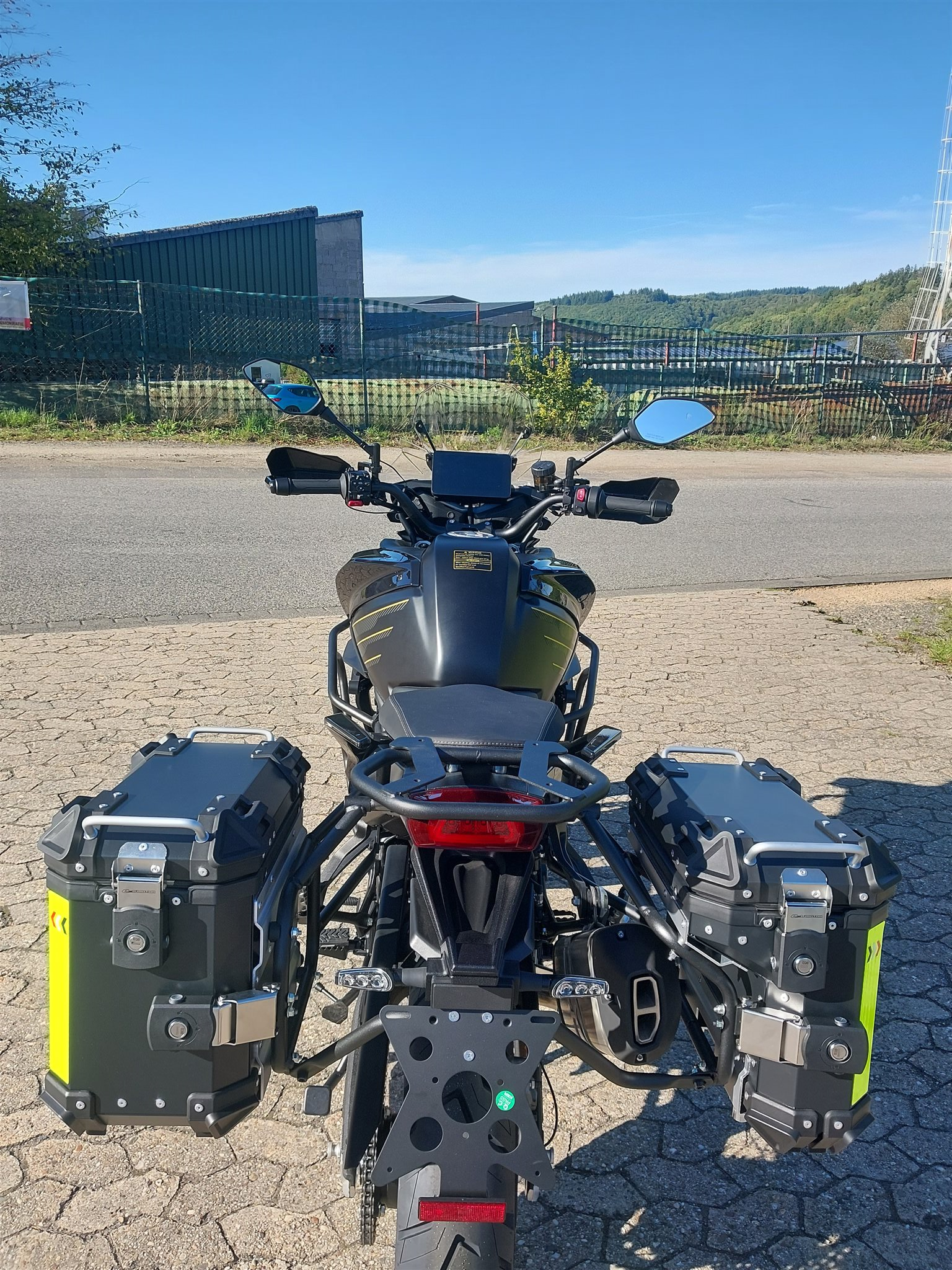 Die SRT 900 SX ist deine digitale Fahrbegleitung im nächsten Level. Ausgestattet mit Tempomat für entspannte Langstrecken, E-Gasgriff für feinfühlige Gassteuerung und einem Quickshifter, der dir ab 2.500 U/min das blitzschnelle Schalten ermöglicht ohne Kupplung! Moderne Sicherheitssysteme wie der Totwinkelassistent, Spurwechselwarner und Heckaufprallwarner geben dir Vertrauen, wos eng wird. Traktionskontrolle sorgt für Grip auf variierendem Untergrund, während das abschaltbare ABS je nach Situation volle Kontrolle oder höchste Sicherheit bietet. Obendrein ist eine Dashcam im Frontbereich integriert. Erlebe jetzt, was moderne Motorradtechnik kann!
